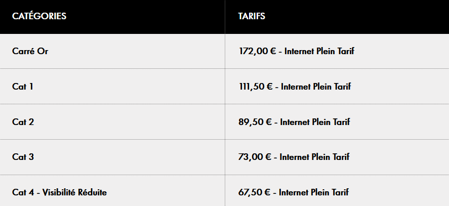 Billetterie : ticketmaster – des places catégories OR sont actuellement disponibles