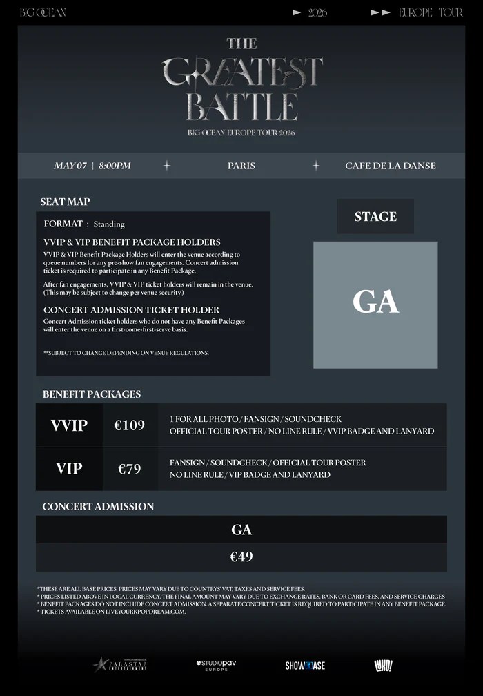 Le premier groupe de K-pop entièrement constitué de membres sourds et malentendants, Big Ocean est de retour en France au Café de la Danse de Paris le jeudi 7 mai 2026 dans le cadre de leur tournée européenne « The Greatest Battle » !