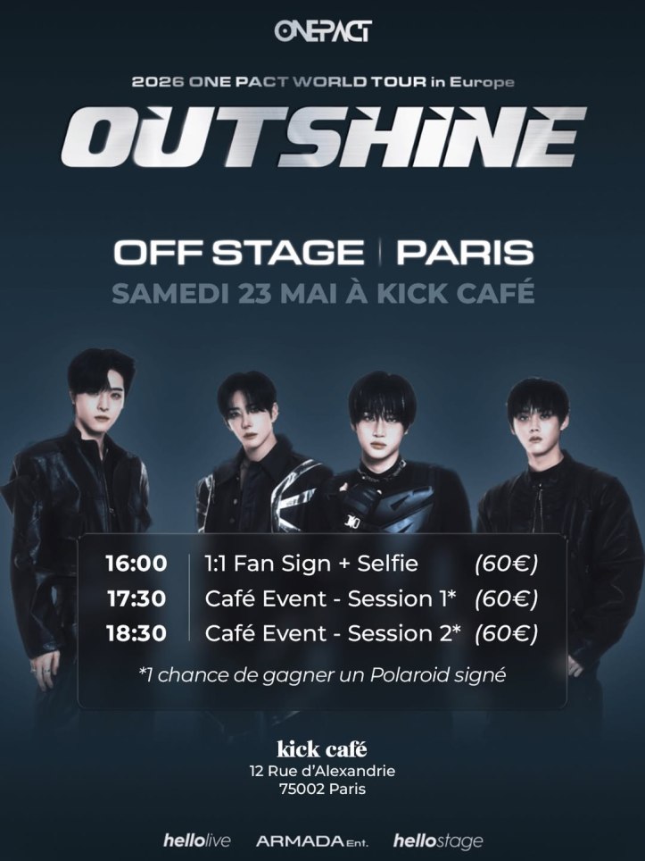 Le samedi 23 mai, le groupe sera présent au Kick Café pour deux sessions de « Café Event » mais aussi pour un Fansign !